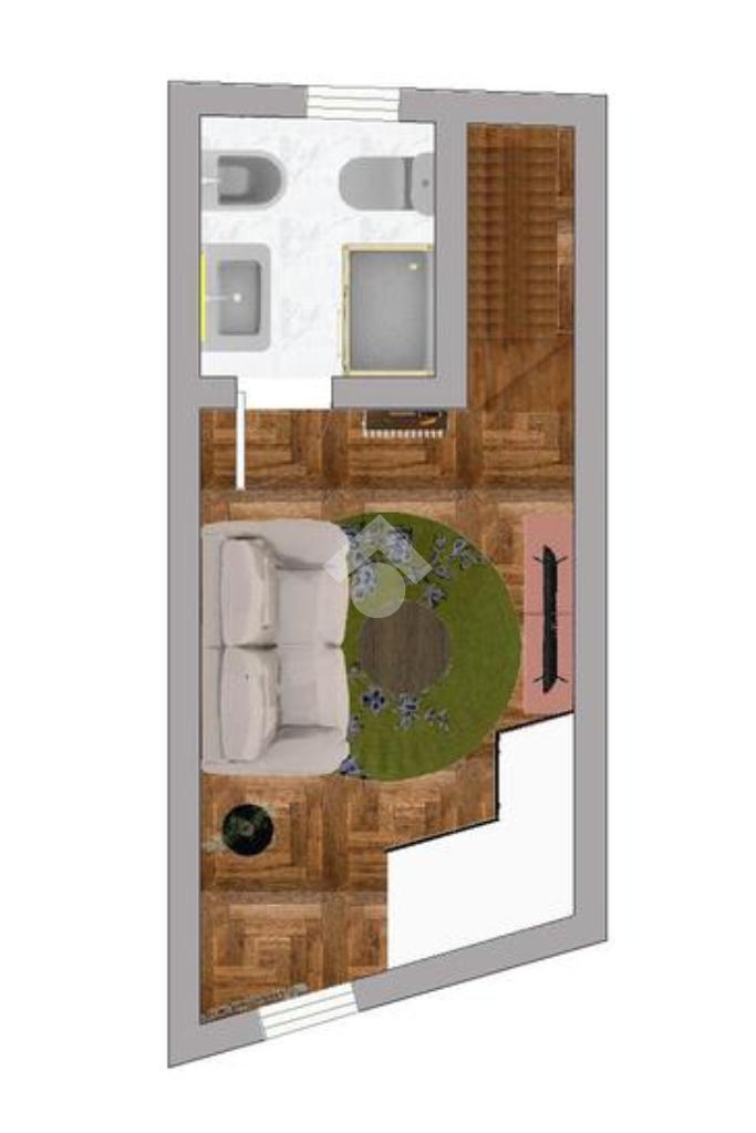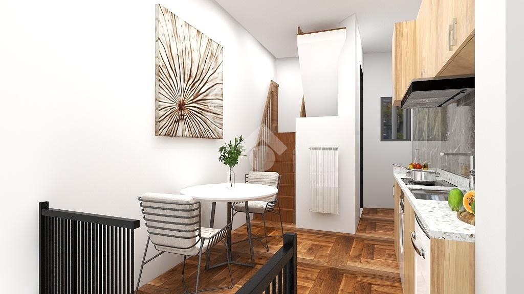 Entrando tramite un cancelletto privato troviamo la cucina abitabile, al piano superiore il soggiorno con bagno finestrato e doccia e all'ultimo piano la camera da letto con camino.