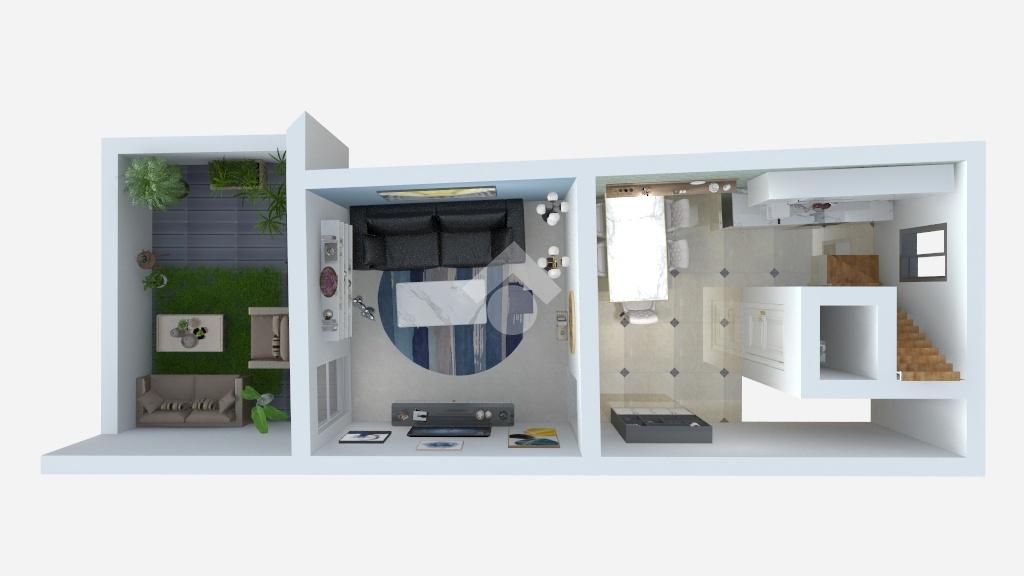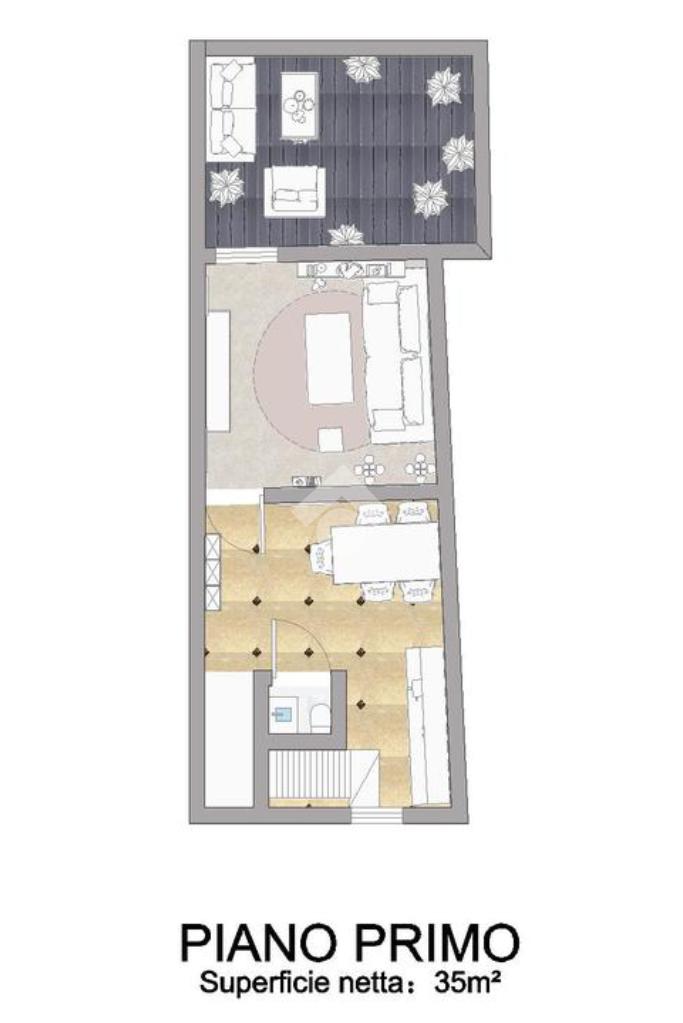 Entrando troviamo una scala interna che conduce alla zona giorno composta da una cucina abitabile con canmino, un piccolo bagno cieco di servizio e un soggiorno con accesso al terrazzo.