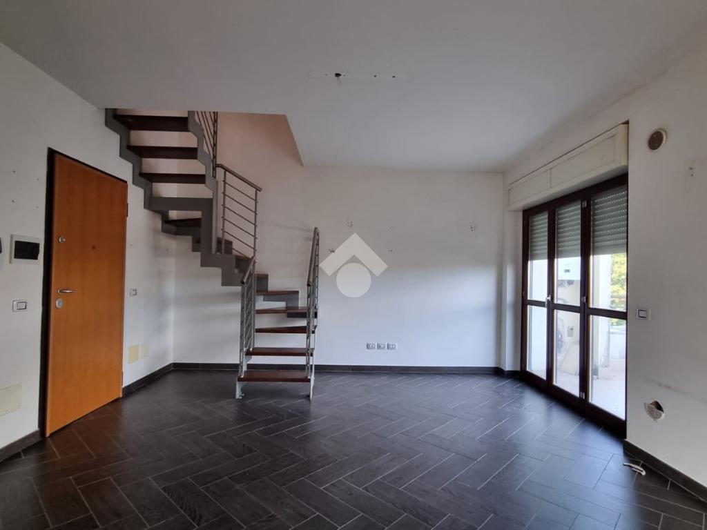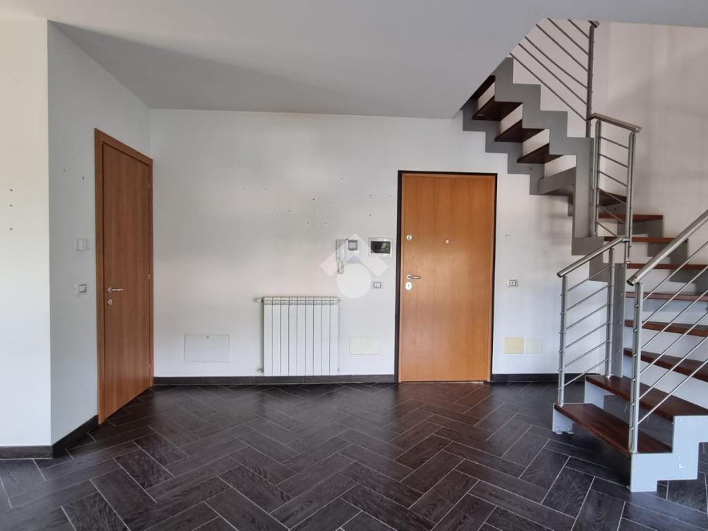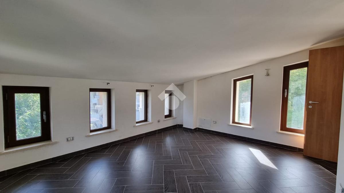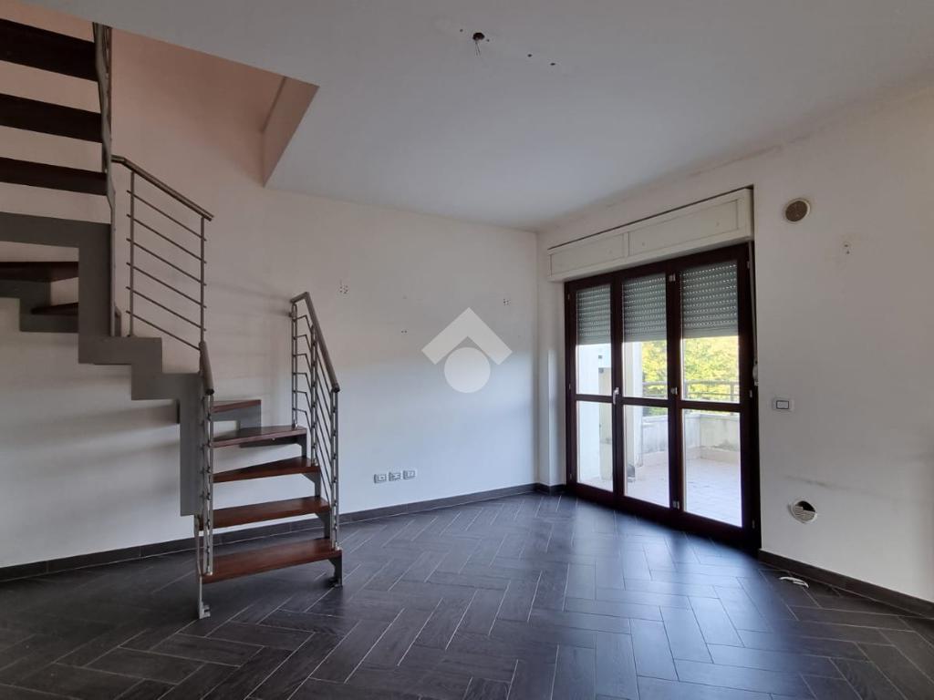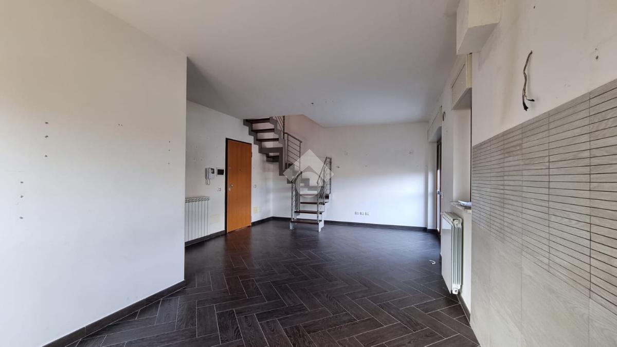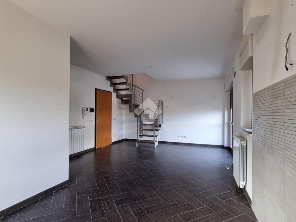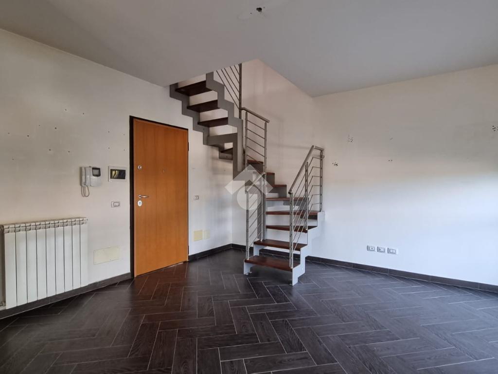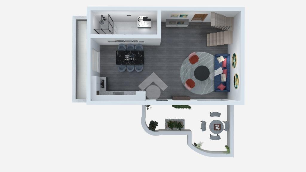 Entrando troviamo l'ampia zona giorno open space composta da soggiorno con angolo cottura dai quali si accede ad un terrazino e un balcone. A concludere il piano troviamo un bagno con finestra e doccia.