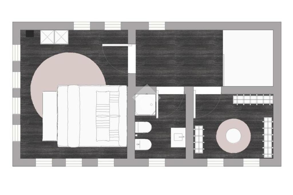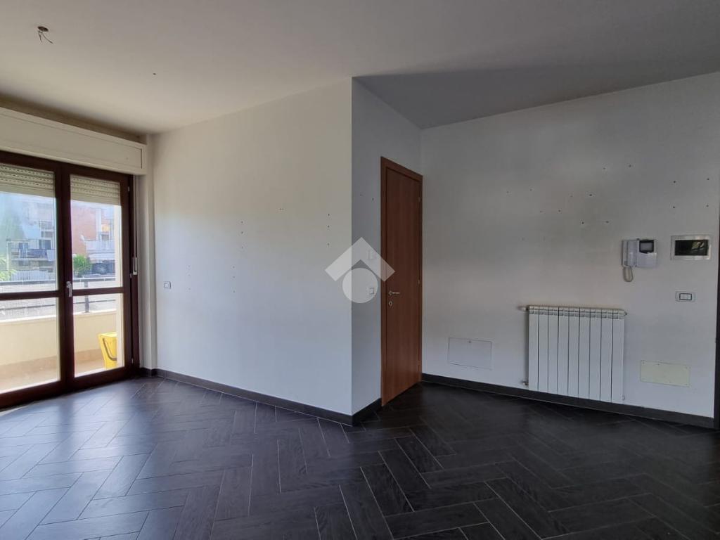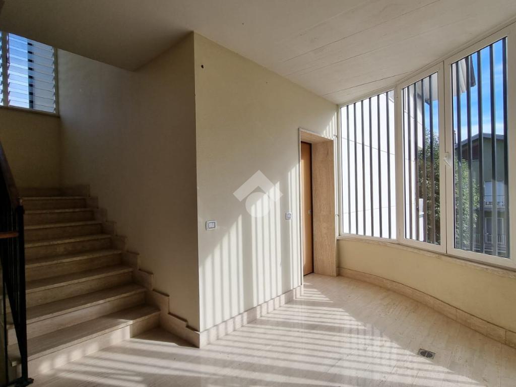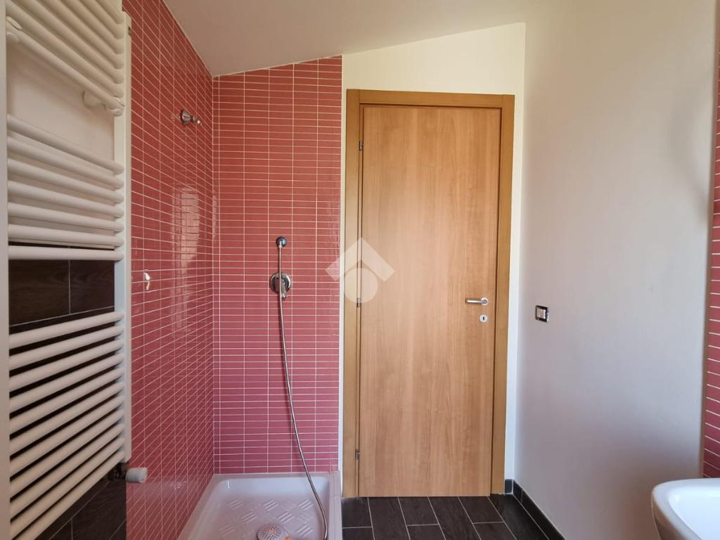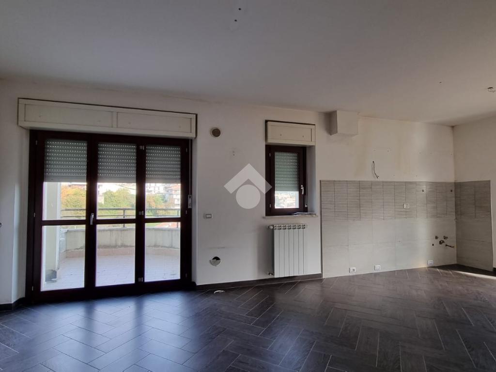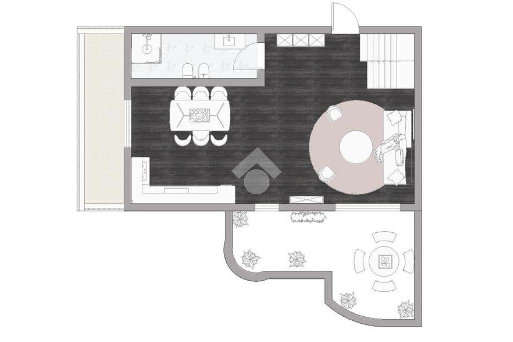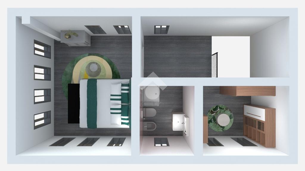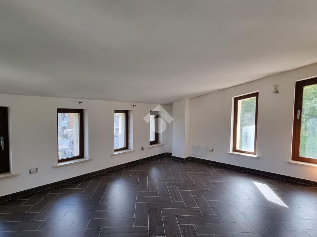 Entrando troviamo l'ampia zona giorno open space composta da soggiorno con angolo cottura dai quali si accede ad un terrazino e un balcone. A concludere il piano troviamo un bagno con finestra e doccia.
