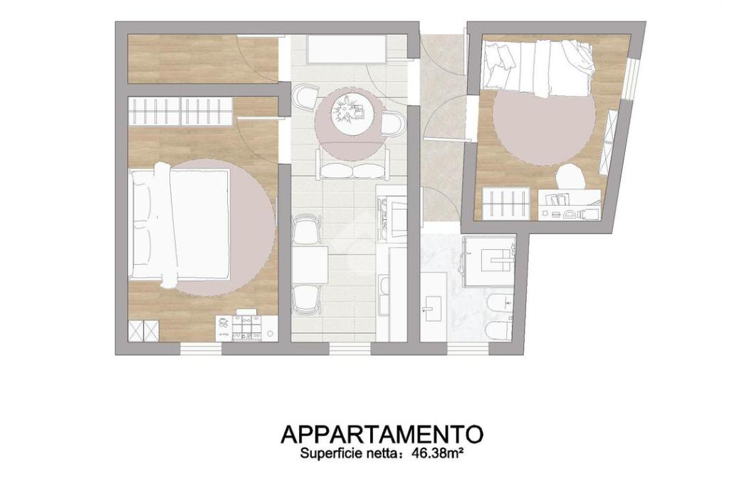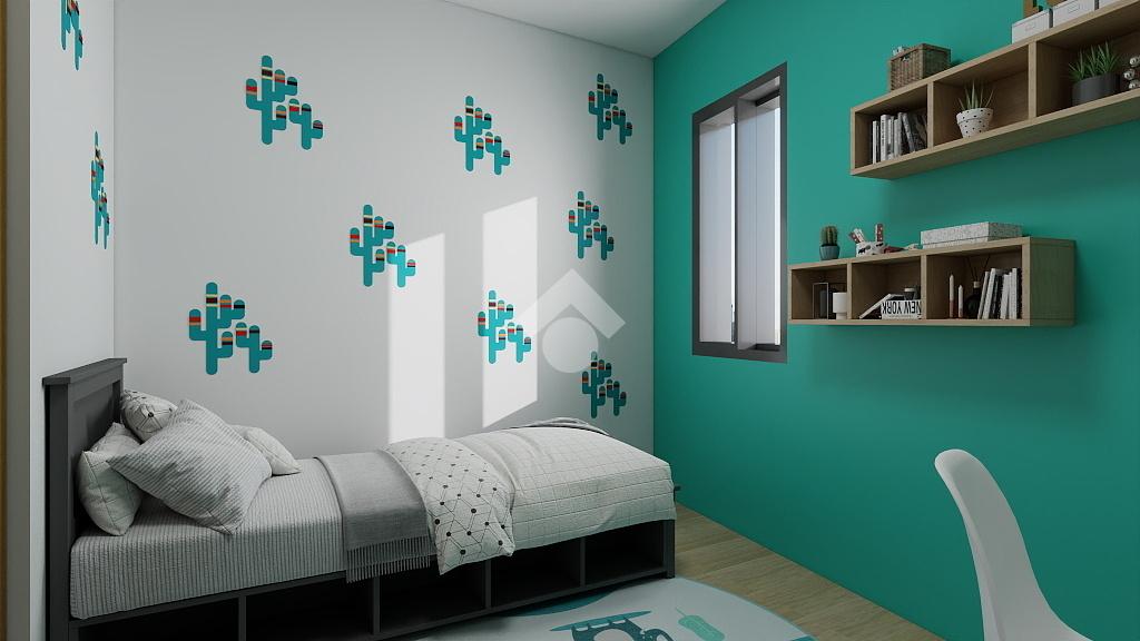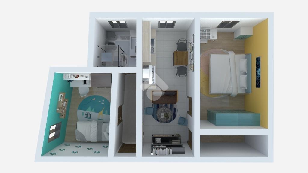 Entrando un corridoio divide i vari ambienti. La soluzione è composta da cucina abitabile, camera da letto, cameretta, bagno, ripostiglio e sottotetto.