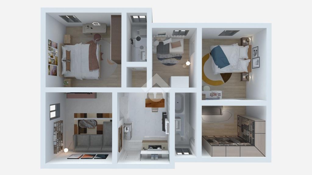 L'appartamento si presenta da ristrutturare. Gli infissi sono in alluminio monovetro, gli impianti sono anni '70. La parte più vicina all'ingresso è stata restaurata intorno agli anni '90, mentre l'altra è rimasta agli anni '70.