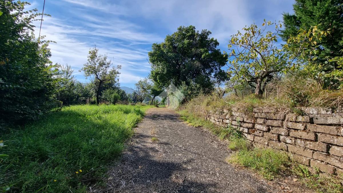 Entrando da un cancello carrabile troviamo la prima parte di terreno e un breve viottolo sterrato carrabile che arriva fino al rustico.