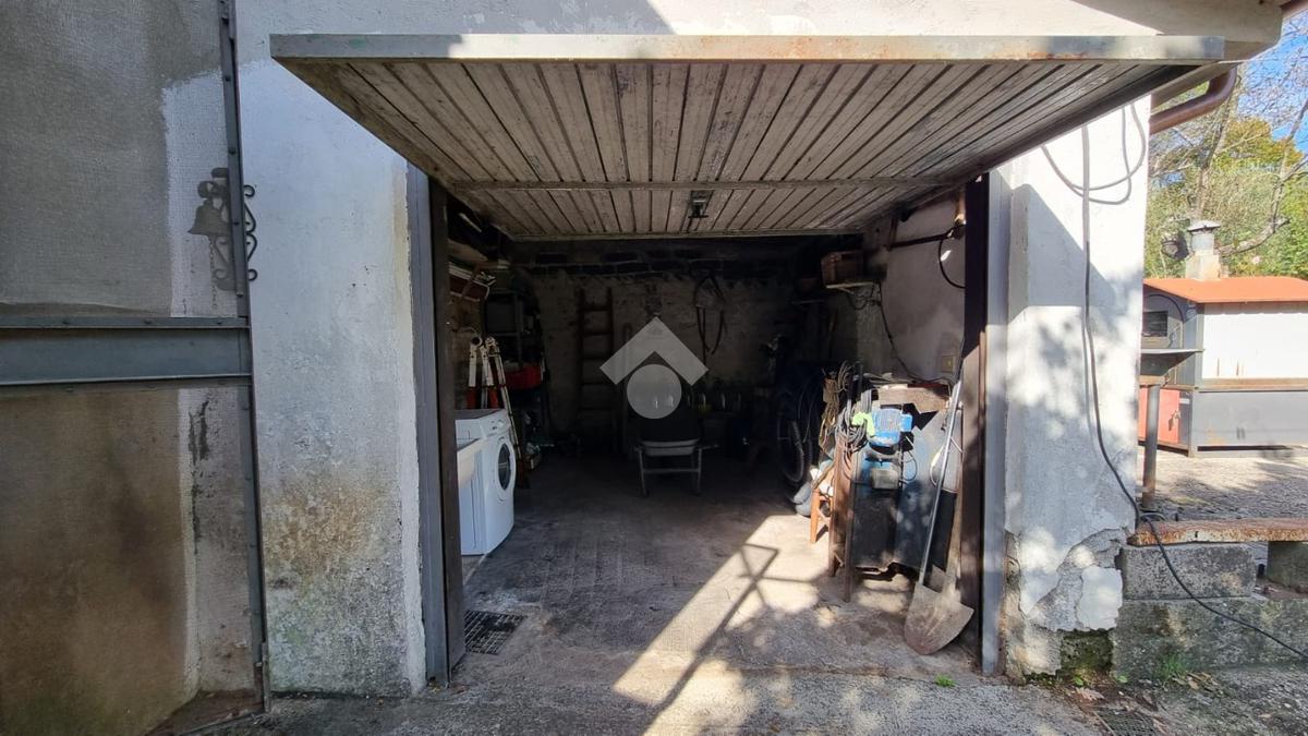 Esternamente troviamo una corte con lavabo e doppio forno, un garage di circa 14 mq e un'altra parte di corte in cemento che conduce sul retro del rustico e alla parte restante di terreno.