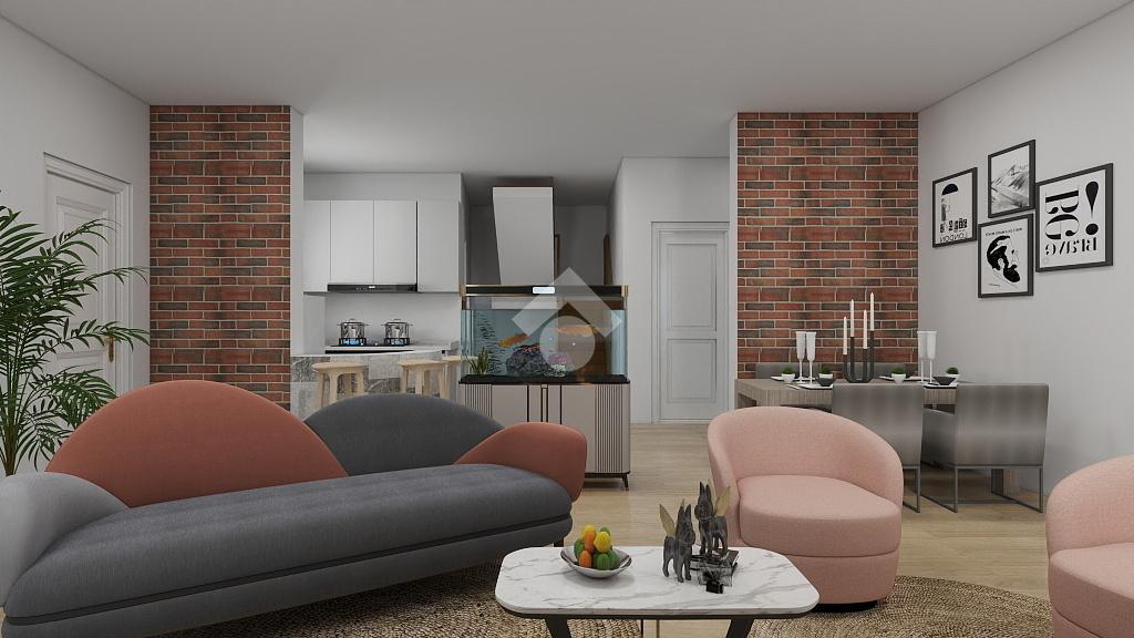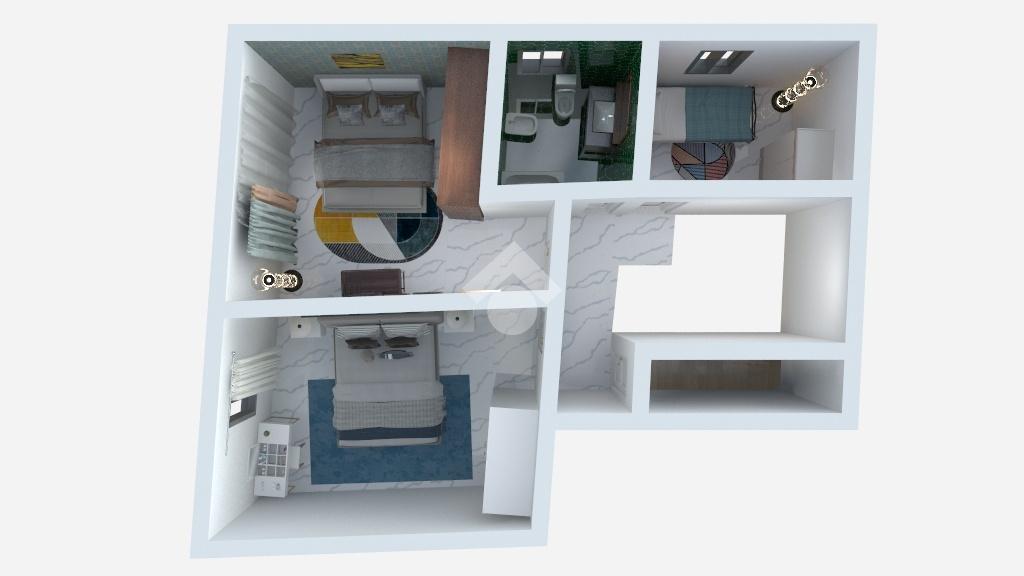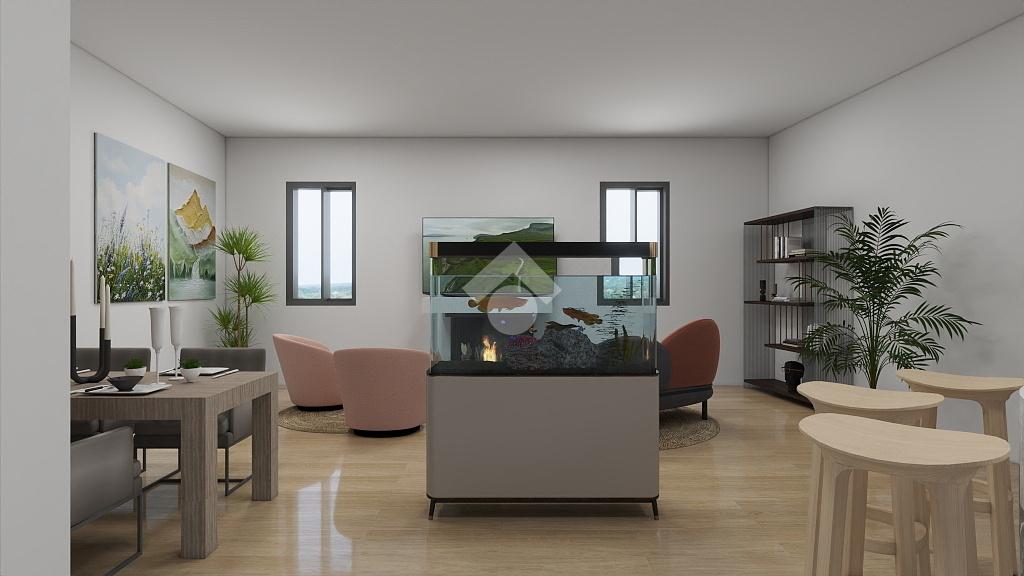 Entrando la soluzione ci accoglie con un doppio soggiorno con camino, un angolo cottura, un bagno con doccia e finestra e una prima cameretta.