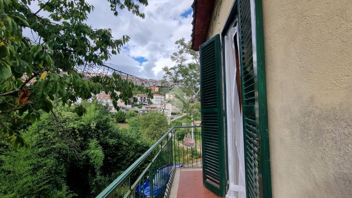 Salendo al primo piano tramite una bellissima scala in legno, troviamo tre camere da letto di cui una con balcone, un bagno con finestra e vasca e un sottoscala che funge da ripostiglio.